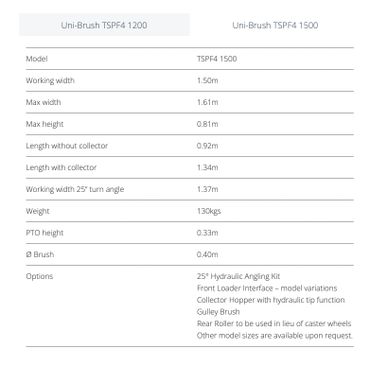 Campey™ Uni-Brush Front Sweeper has been developed to fit tractors from 18 to 60 Hp. The compact design improves the handling to guarantee a fast and accurate work in any conditions.