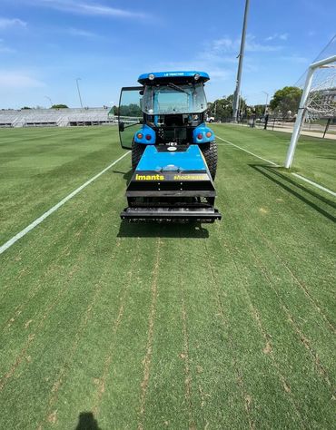 The use of the Imants heavy duty linear compactor eliminates soil compaction. The Shockwave and Rotoknife will reduce thatch, improve aeration, and remove surface.